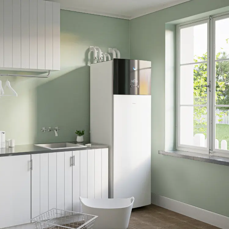 Ilma-vesilämpöpumppu toimii osana vesikiertoista lämmitysjärjestelmää ja soveltuu hyvin sekä uudiskohteisiin että lämmitysremontteihin. Ratkaisu hyödyntää uusiutuvaa energiaa ja tukee energiatehokasta asumista ja kiinteistön käyttöä.